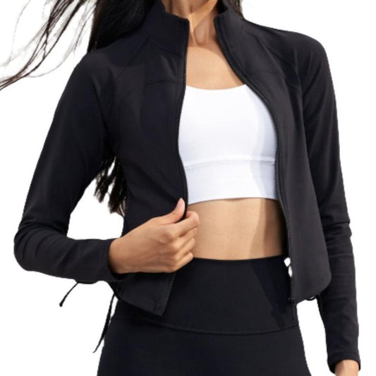 "Ace the Court: Women's Soft Brushed Full-Zip Long Sleeve Cropped Training Top Jacket "